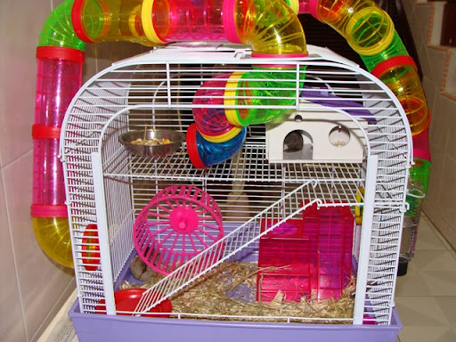 I've have resorted to pimping, Jeanie's hamster cage from the highly sorry specimen you see below: