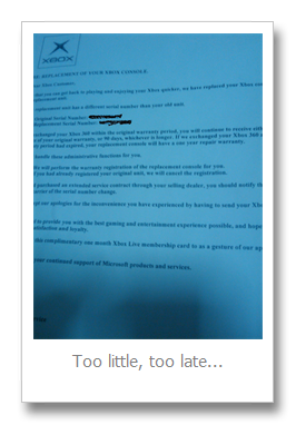 Excuse me for the lack of updates… I just got my replacement elite a few weeks ago and I have been getting reacquainted with it… Although I am happy that it got replaced, I am rather pissed that it had to die on me in the first place… I think their manufacturing division better get their act together and produce better hardware…